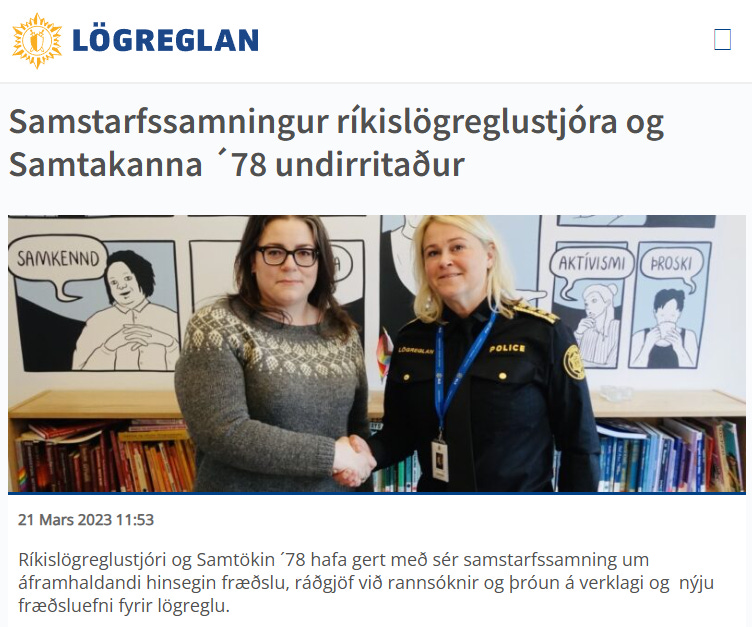 „Samstarfssamningur ríkislögreglustjóra og Samtakanna ´78 undirritaður,“ Logreglan.is, 21. mars 2023.